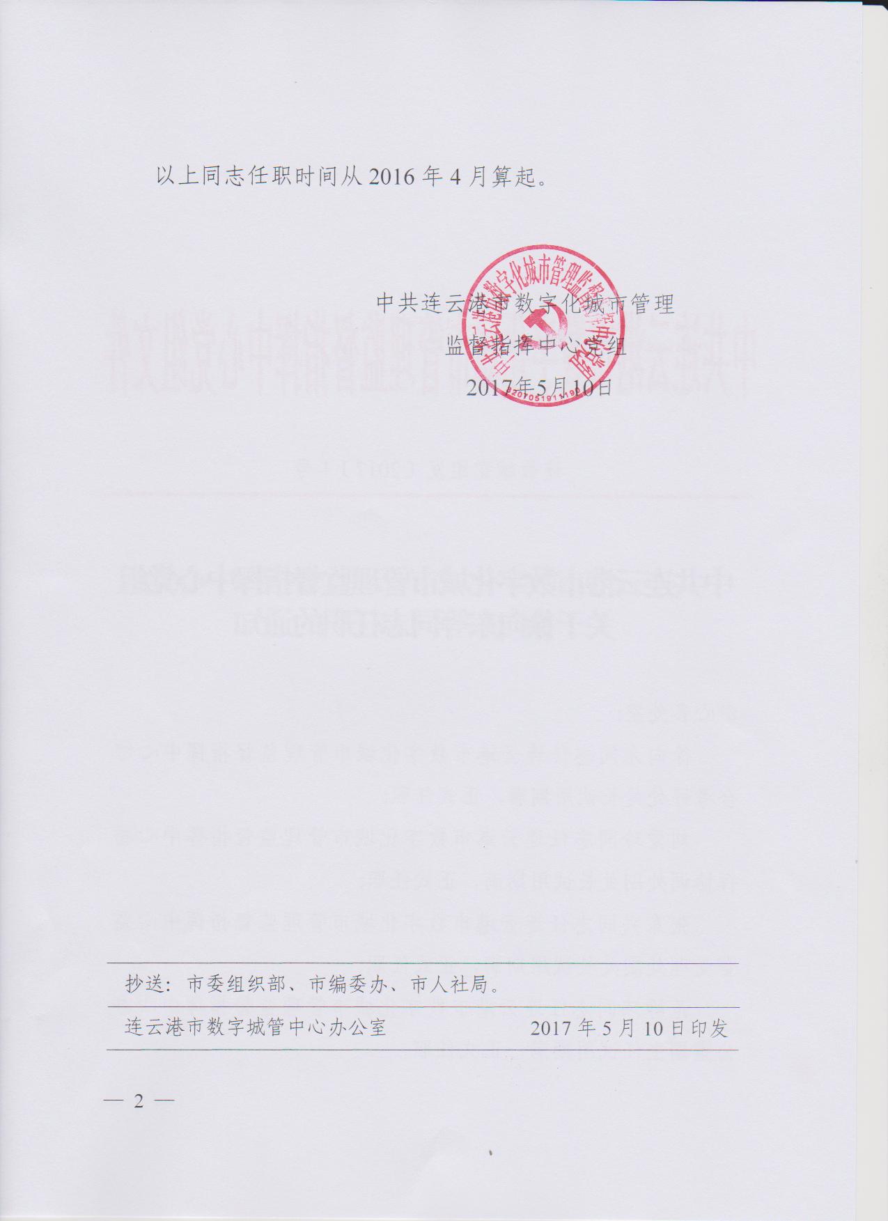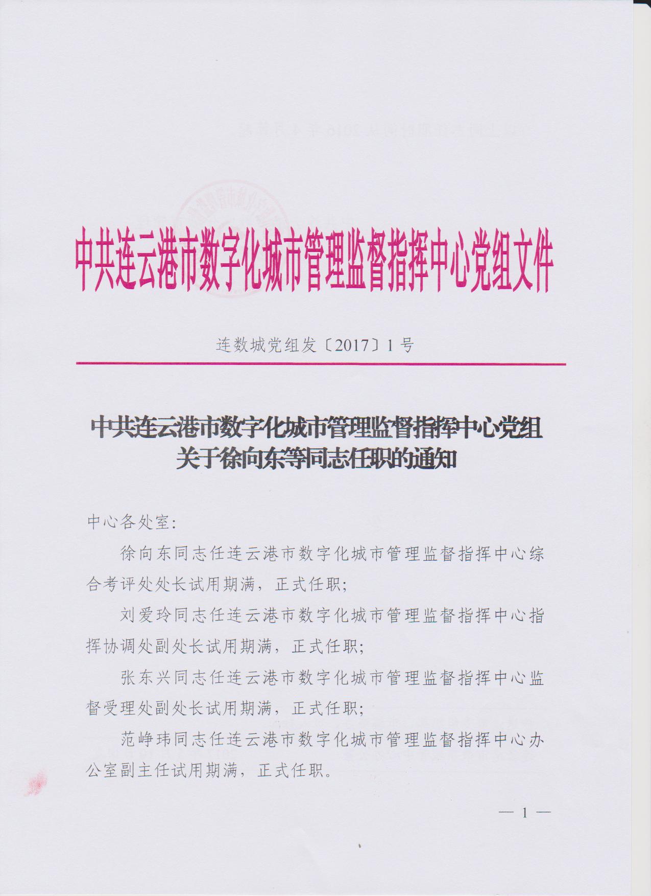 中共连云港市数字化城市管理监督指挥中心党组关于徐向东等同志任职的通知